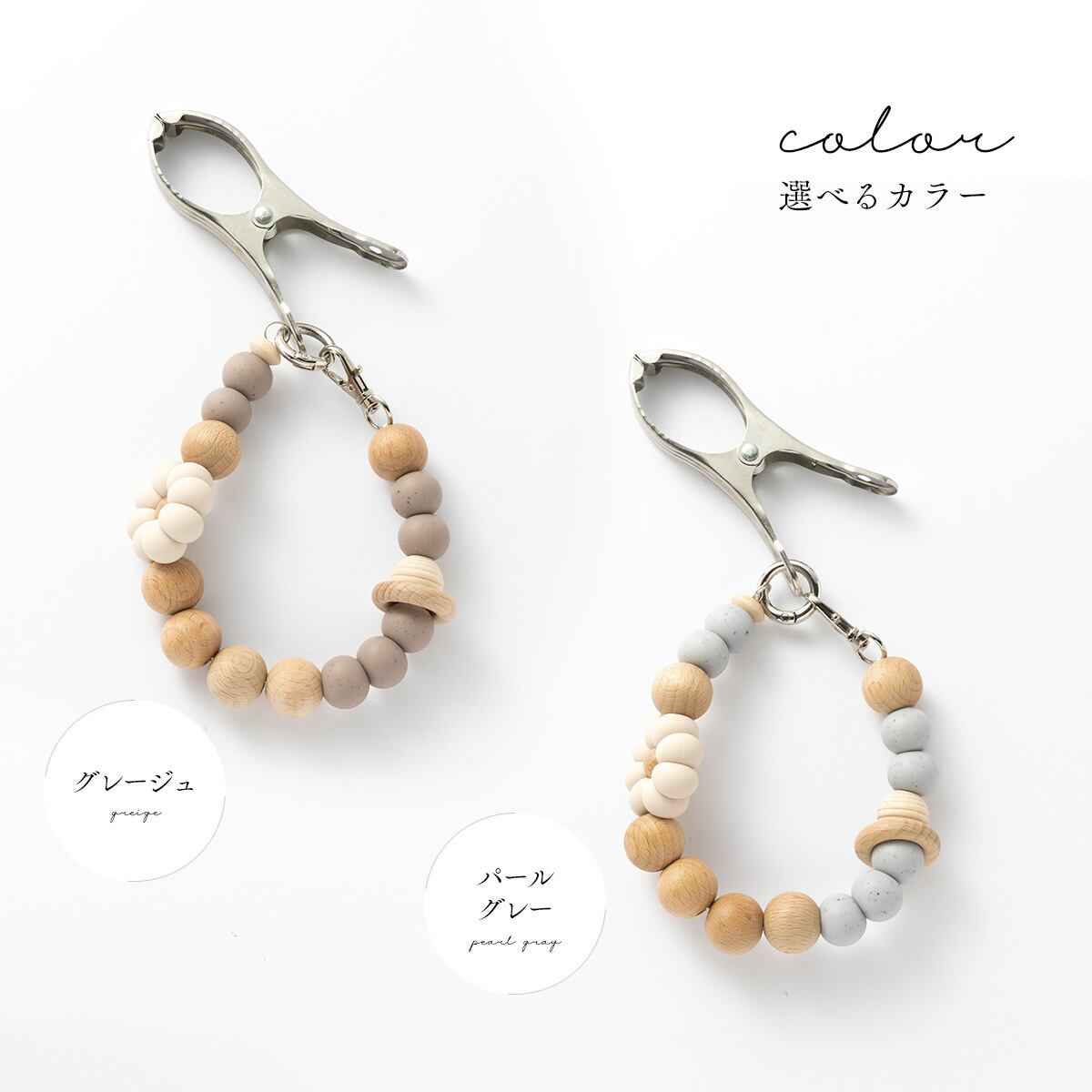 シリコンビーズはBPAフリー・FDA認可の食品基準クリアのものを使用しています。